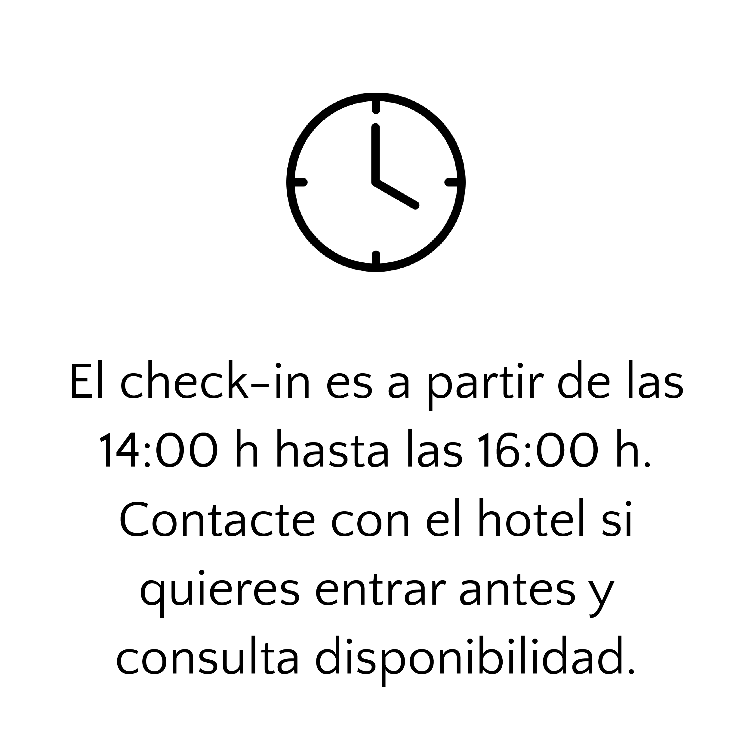 El Check-in se realizará desde las 14 h hasta las 16 h, si deseas entrar antes ponte en contacto con nosotros para comprobar disponibilidad.
